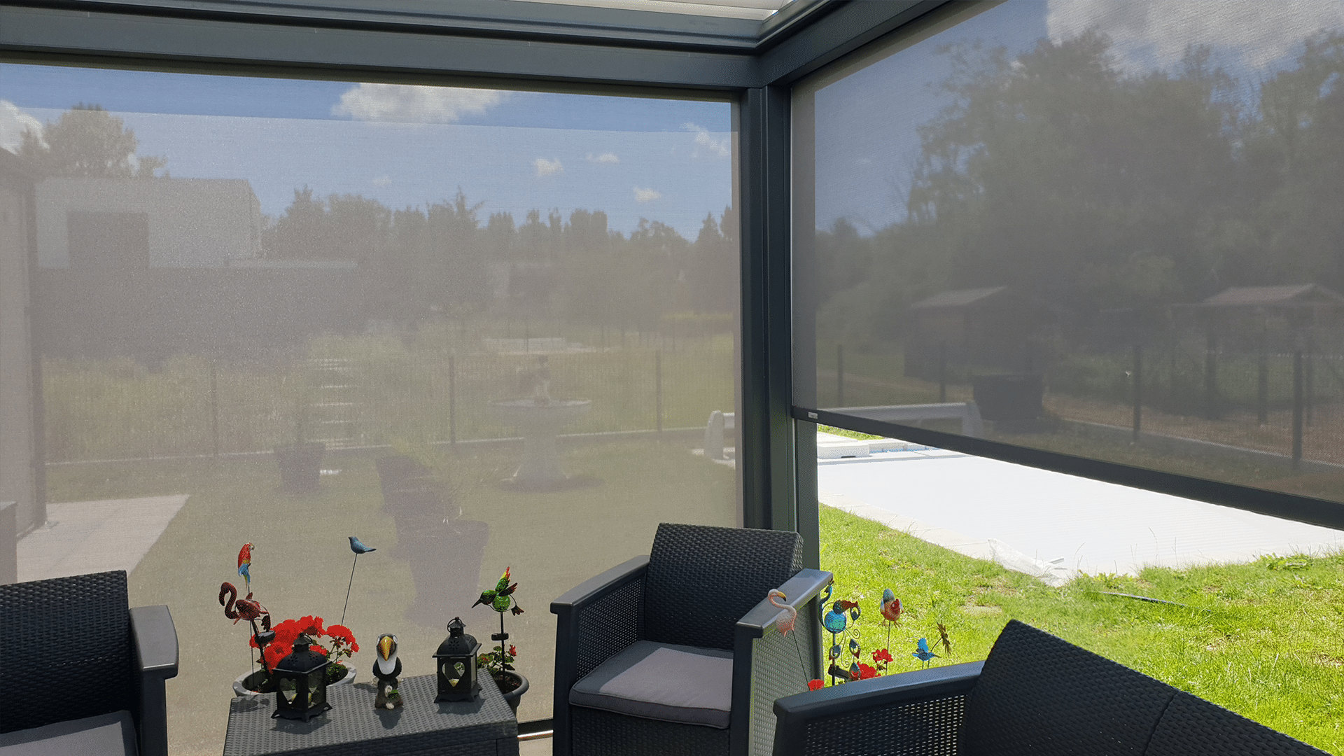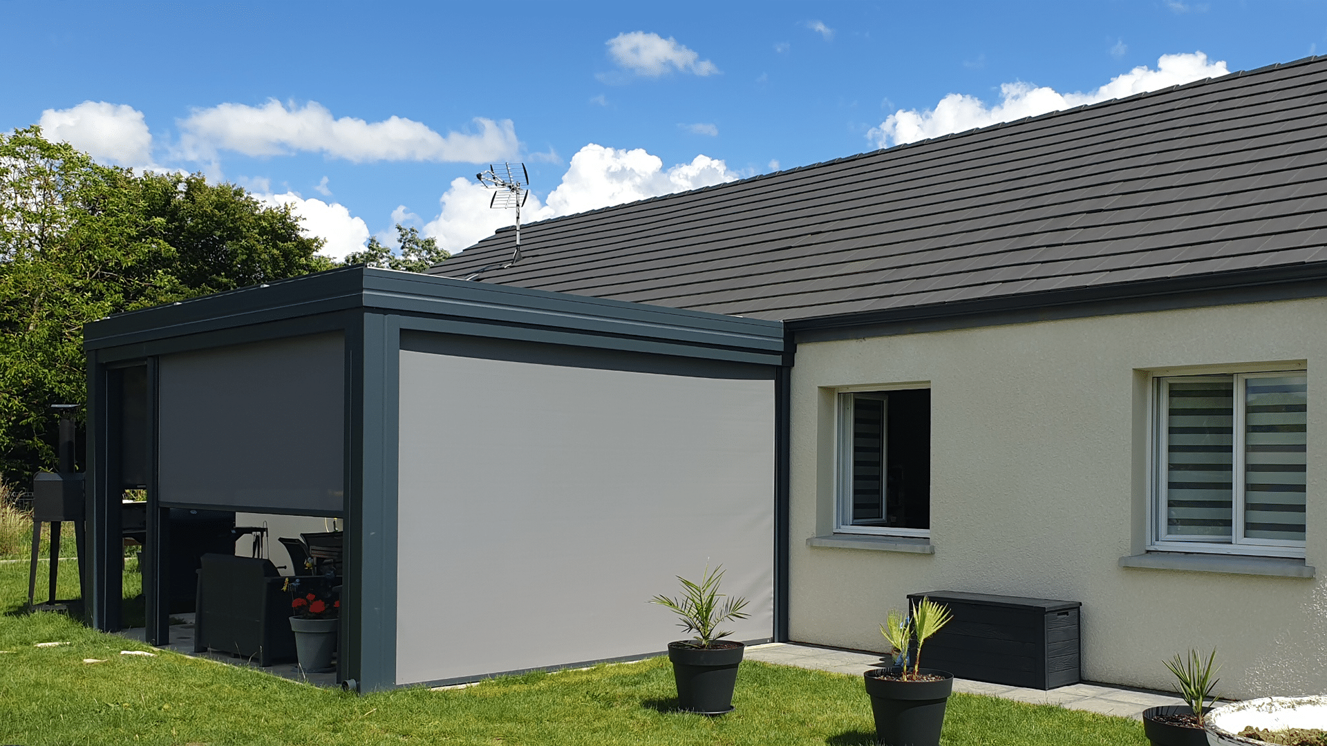 Stéphane et Carole souhaitaient installer une pergola bioclimatique bien toilée qui se glisse sous la gouttière !