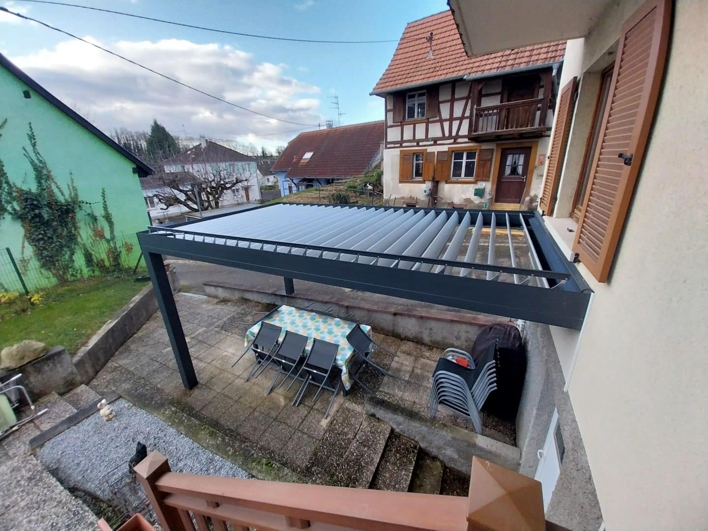 Pergola adossée à Pfulgriesheim – Lames orientables pour un confort optimal