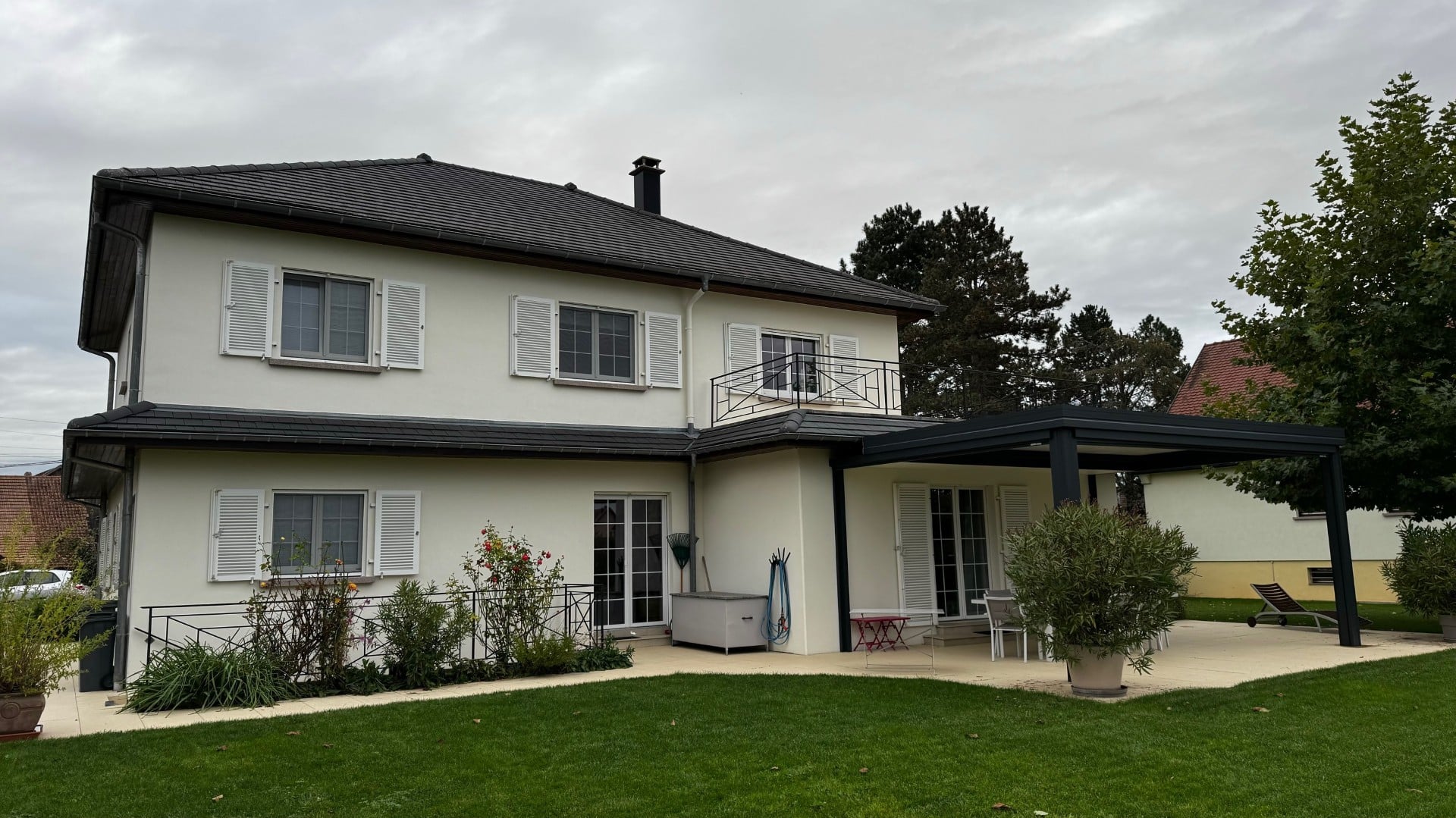 Cette magnifique pergola de terrasse a été installée sur mesure pour compléter harmonieusement cette maison au style moderne en périphérie de Colmar. Avec ses lignes épurées et sa structure en aluminium gris anthracite, elle crée un espace extérieur accueillant tout en apportant une touche contemporaine à l’ensemble de l’habitat. Le toit en lames orientables permet de réguler l’ensoleillement, garantissant une protection optimale contre les intempéries tout en laissant entrer la lumière lorsque nécessaire. Grâce à cette pergola, les propriétaires peuvent désormais profiter pleinement de leur terrasse, qu’il pleuve ou qu’il fasse beau.